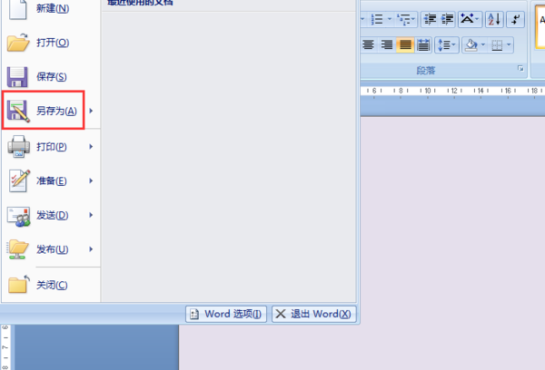 用Word2007保存时跳出的保存版本功能属于“另存”,下面给出另存的使用方法:
