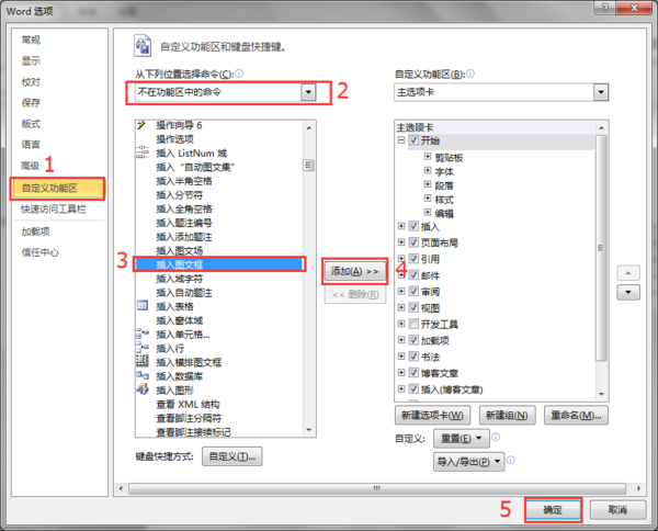 第一步:点击【文件】→【选项】→【快速访问工具栏】→【不在功能区的命令】→【插入图文框】→【添加】→【确定】,在word的左上角即可看到添加图文框按钮。