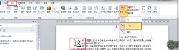 第一种:首字下沉,将光标定位在文字的第一段中,点击【插入】→【首字下沉】→【下沉】,然后左键双击首字出现图文框对话框;由此我们知道首字下沉获得的是图文框的一种。