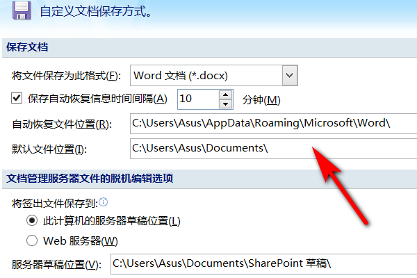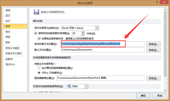 5、然后在保存文档里面找到自动回复文件位置的路径,按照此路径将可以尝试将关闭的word文档恢复。