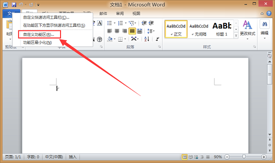 1、首先打开word,然后在左上角文件位置处点击鼠标右键,点击选择“自定义功能区”