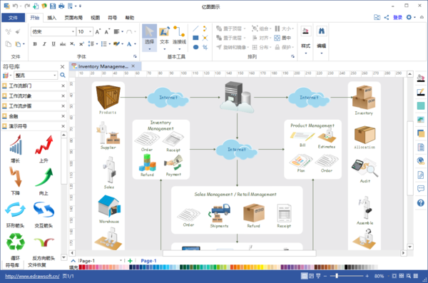 2、EDraw(亿图),又强大又好用,很容易上手,做出来的东西也漂亮,功能也符合大多数的流程图需求,还能导出多种格式(位图和矢量都可以);