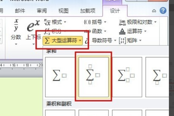 3、在大型运算符号下面找到合适的求和符号并单击打开;