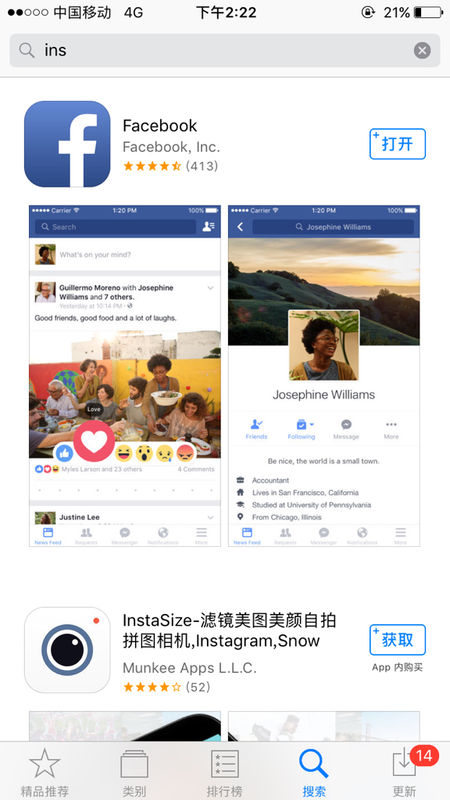 3、在“App Store”里下载“Instagram”并安装。
