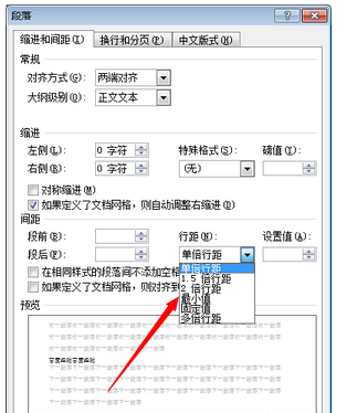 3.然后再设置需要的文字行间距,单倍间距或1.5倍间距都可以了。