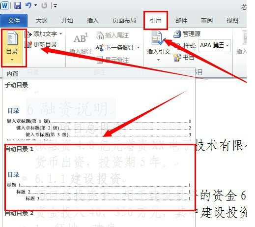 word 2010 如何插入目录?