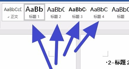 2.然后, 您可以在页面的顶部样式中看到标题一、标题2、标题三、标题四。将我们选择的内容设置为不同级别的标题。