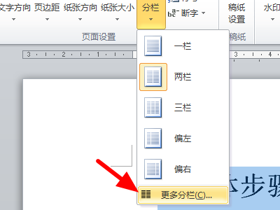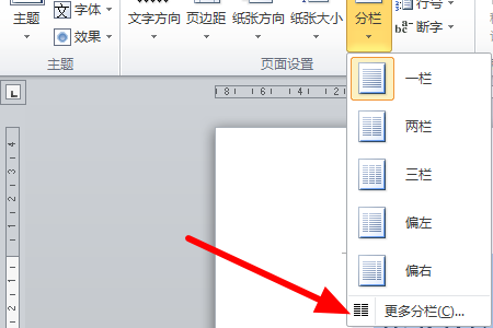 1、首先我们打开需要编辑的Word文档点击打开页面布局中的“分栏”,选择“更多分栏”。