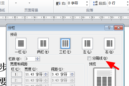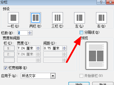 3、然后我们在弹出来的窗口中点击选择栏数,之后点击打开“分隔线”即可出现分隔线了。
