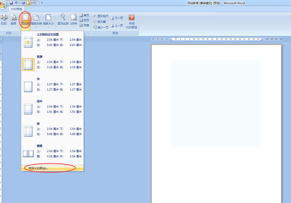 3、在打印预览里,设置页边距,操作方法同 上述 1,如图: