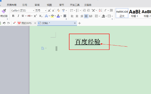 1、输入你想设置下横线的文字,我们下面就以“百度经验”字样作演示: