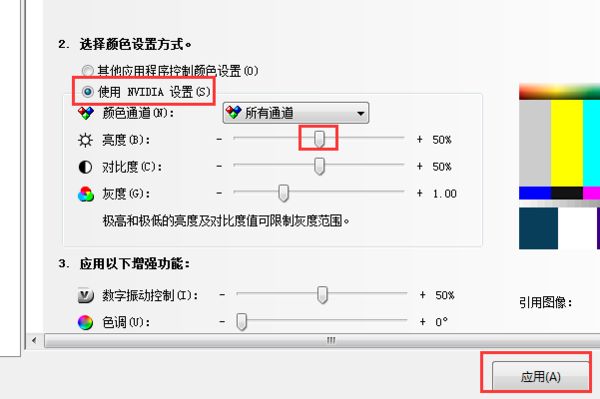 五、勾选“使用NVIDIA设置”,拖动“亮度滑块”调节亮度,亮度合适后,点击“应用”就可以了。