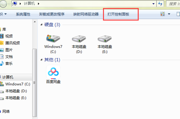 一、按下WIN+E打开计算机,然后点击“打开控制面板”。