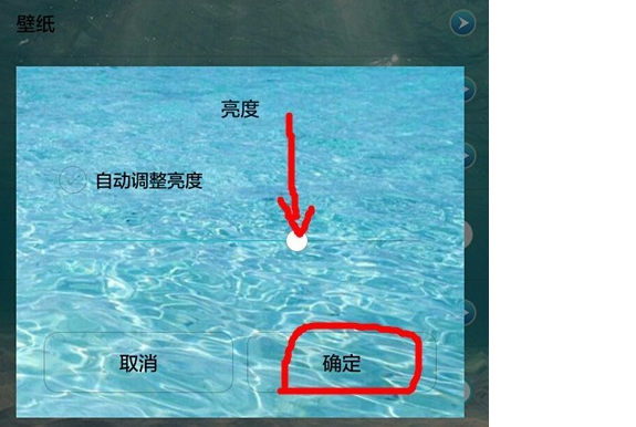 5这时,我们能够看到在我们的手机页面上呈现亮度设置的设置框;