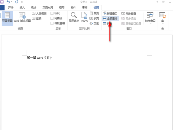 2、选择“全部重排”
