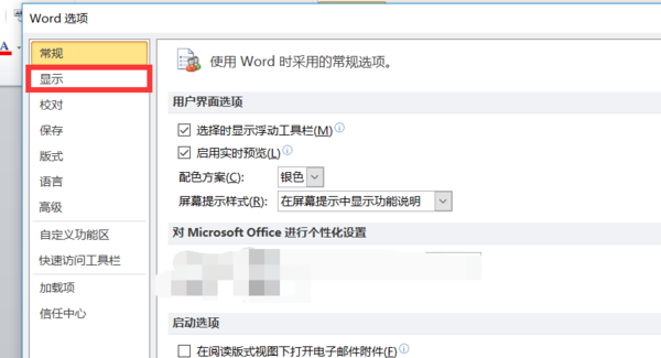 3、然后在弹出来的对话框内点击左侧的“显示”选项卡。