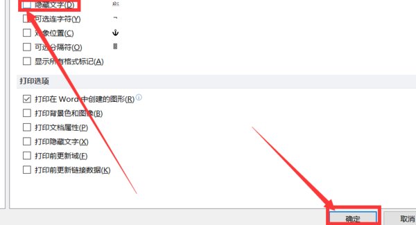 4、然后在此页面内点击取消勾选“隐藏文字”选项,接着点击下方的“确定”,然后就完成了。