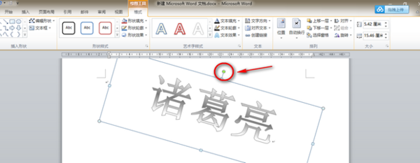 6.也可以利用艺术字的绿色控制点,旋转字体。注意最后要把两个艺术字调成,从两边看都是正方向;