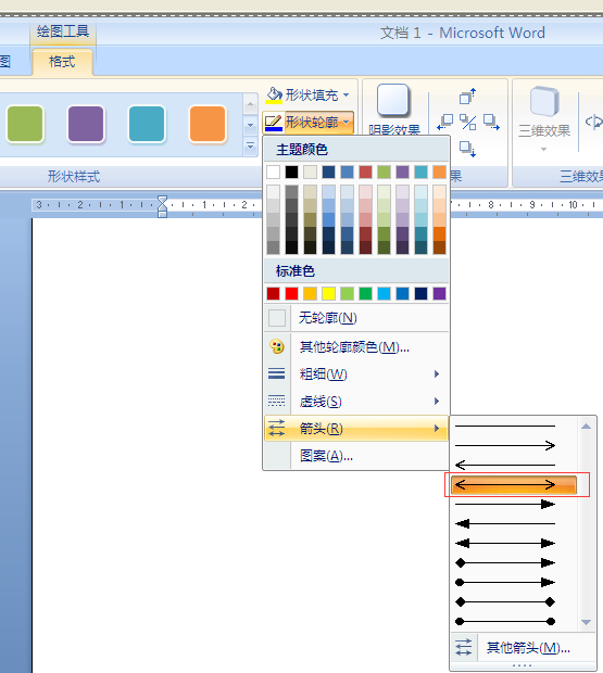 3、选中圆弧,单击绘图工具格式----形状轮廓----箭头----双箭头即可,如图所示。