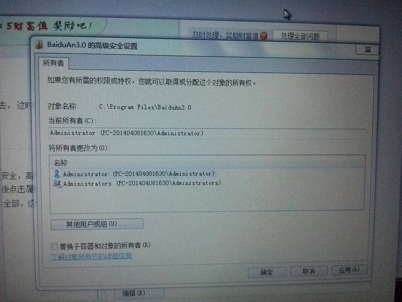右键打开文件的位置,找到文件夹,右键文件夹,属性,安全,高级,所有者,编辑,把将所有者更改为选择登陆系统管理员用户,确定应用,最後点击属性,安全,编辑,在组和用户名选择登陆系统管理员用户administrators下栏选择全部,这样你就有了管理员权限可以删除了,记得清理注册表,同时全盤扫描。更多