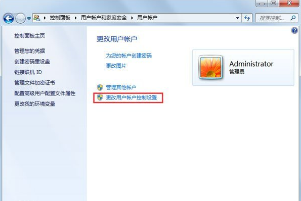 进行文件操作或安装软件的时候还提示需要“管理员账户权限”才能进行此操作,首先进入账户中心,点击“更改用户账户控制”,进入账户控制界面进行设置;