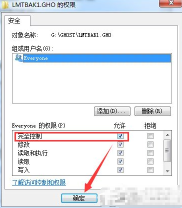 设置文件的安全访问权限:点击编辑按钮,然后勾选Everyone权限的“完全控制”,再点击确定;