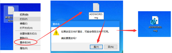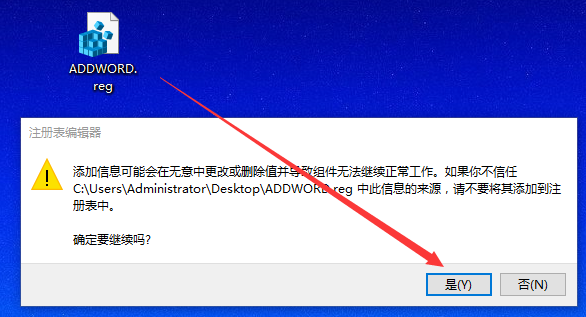 3、双击addword.reg,导入到注册表,对于警告,选择“Y“,完成导入。