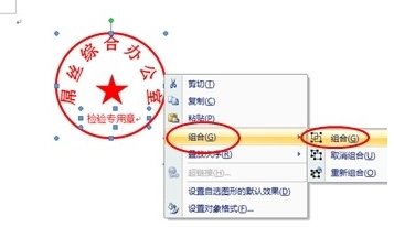 5、全选公章,右键“组合-组合”。取消选择。