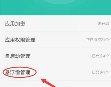 3、接着在新打开的界面中找到“悬浮窗管理”选项。