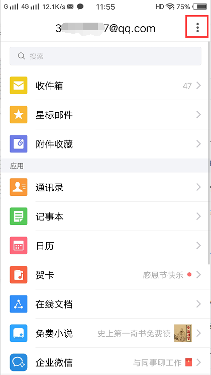 1、打开手机上的QQ邮箱APP,进入QQ邮箱后点击右上角的
