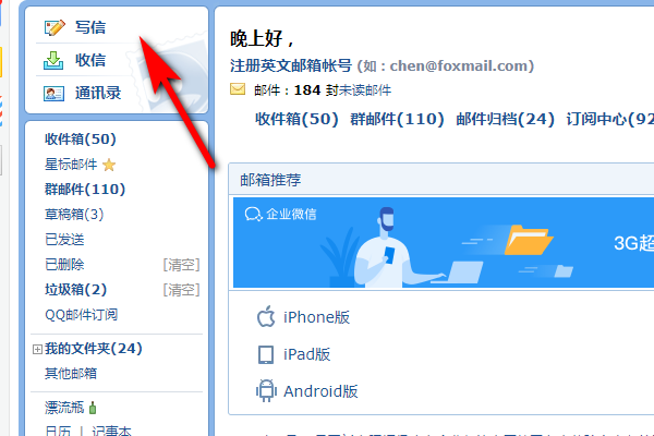 2.进入到邮箱后,点击上面的写信选项。