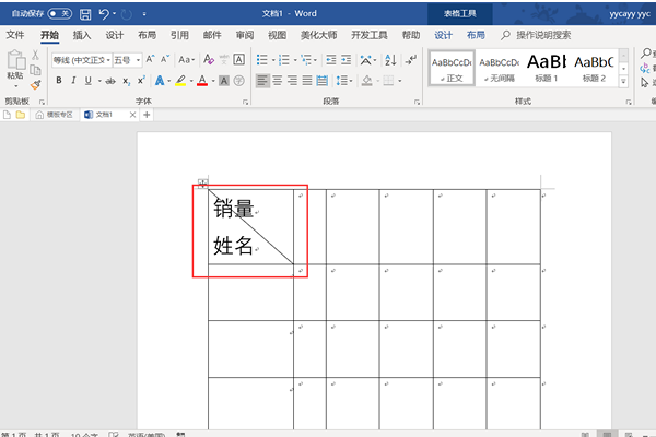 然后就会发现上方的文字跑到右边去了 ,至此表头斜线文字输入完了。