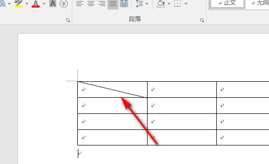 3、点击直线后,用直线在表格中画一条斜线。