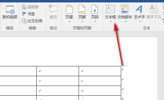 4、绘制好表格后,点击工具栏中的插入文本框。