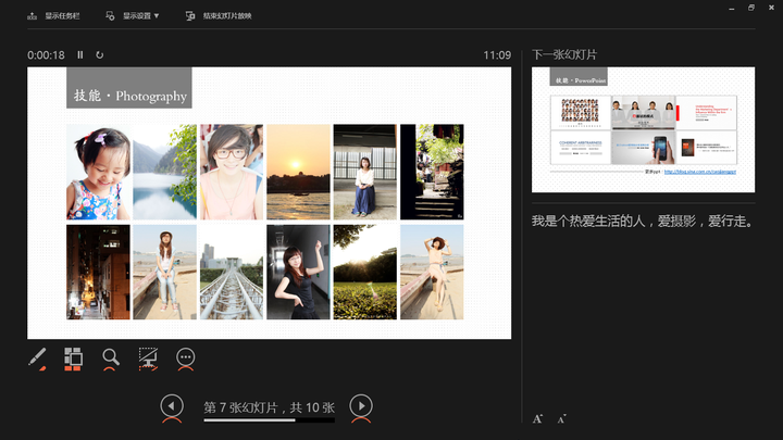 在演示者视图界面下,我们可以查看备注(观众看不到),可以看到下一页是什么,还可以放大幻灯片大小——这些功能这极大地方便了我们的演讲。