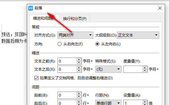 3、输入文字后,按段落的快捷键Alt+O+P,就可以直接调出段落管理页面,就可以调整段落的参数了。
