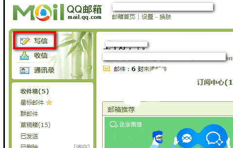 2、进入QQ邮箱,点击左上角的“写信”选项打开。