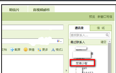 3、在页面右侧找到要发送的联系人,如下图所示,点击打开。
