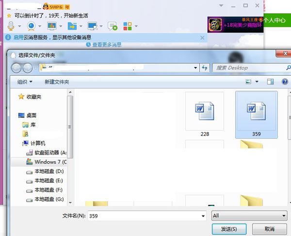 4、按照提示要求找到要发的word文件所在的盘(如桌面、D、E、F盘等),然后进一步找到word所在的文件夹,最后找到要发的word文档