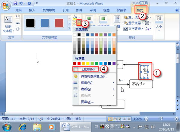 8、将插入的文本框的框去掉。点击选中文本框,点击格式菜单,点击形状轮廓,选择无轮廓。