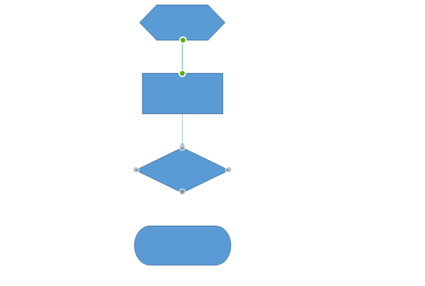 画完步骤形状之后,开始添加箭头。在“线条”组中,选中一个箭头,然后移动到画好的形状上,形状会自动显示“锚点”,供箭头“停靠”。而且,箭头画好后,如果形状移动,箭头将跟随移动。