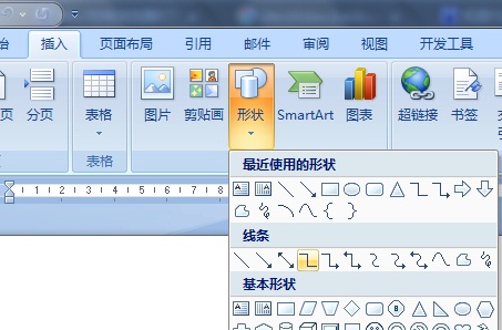 word2007中做流程图可以在“插入”菜单的“形状”工具中做出。