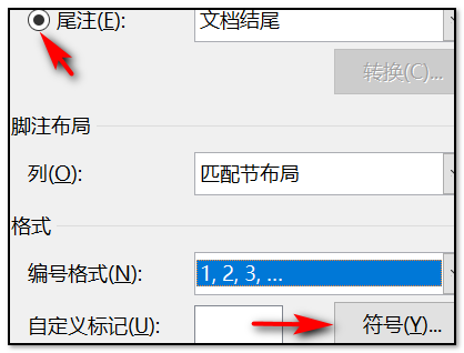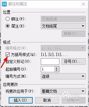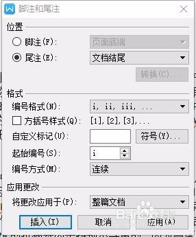 选择是脚注还是尾注。一般我们选择尾注,因为尾注可以放置于文档最末尾。