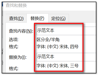 8、设置成功后即可在查找和替换的界面内看到相应的设置参数;
