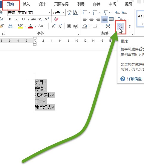 那就,直接选中相应条目,进行排序,开始--段落--排序。