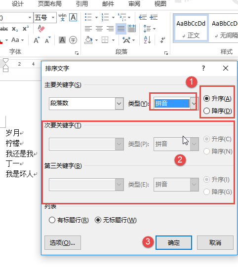 跪求如何把word里的选择题按首字母拼音排序。我看了别人的回答什么段落排序什么的 也试过了 不好使。。。