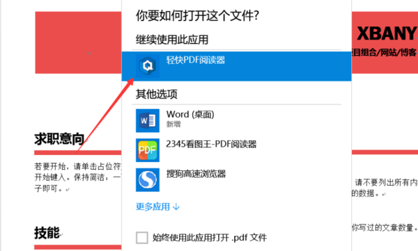 3、当word文档转化成pdf文档的操作完成后,将弹出如图所示的,打开文档类型选择界面,我们直接选择对应的,pdf查看工具来打开。