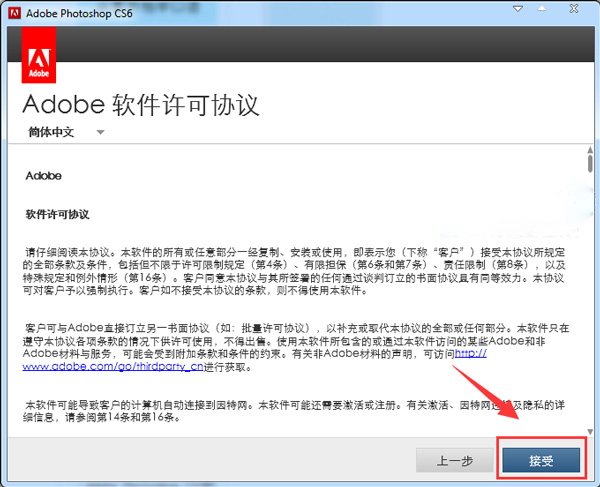 接受软件许可协议。