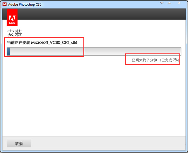 七、此时PS CC软件开始安装,根据用户的电脑配置的差异,其安装的时间也有所差别,请耐心等待其安装;软件就已经安装结束了。