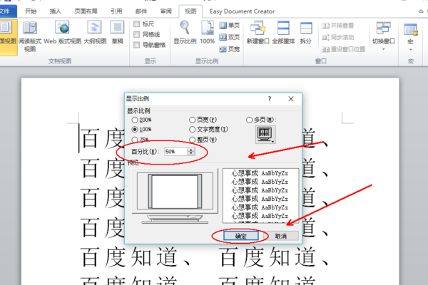 2、在百分比后面文本框中输入需要缩放的比例比如50%,然后点击确定按钮即可。